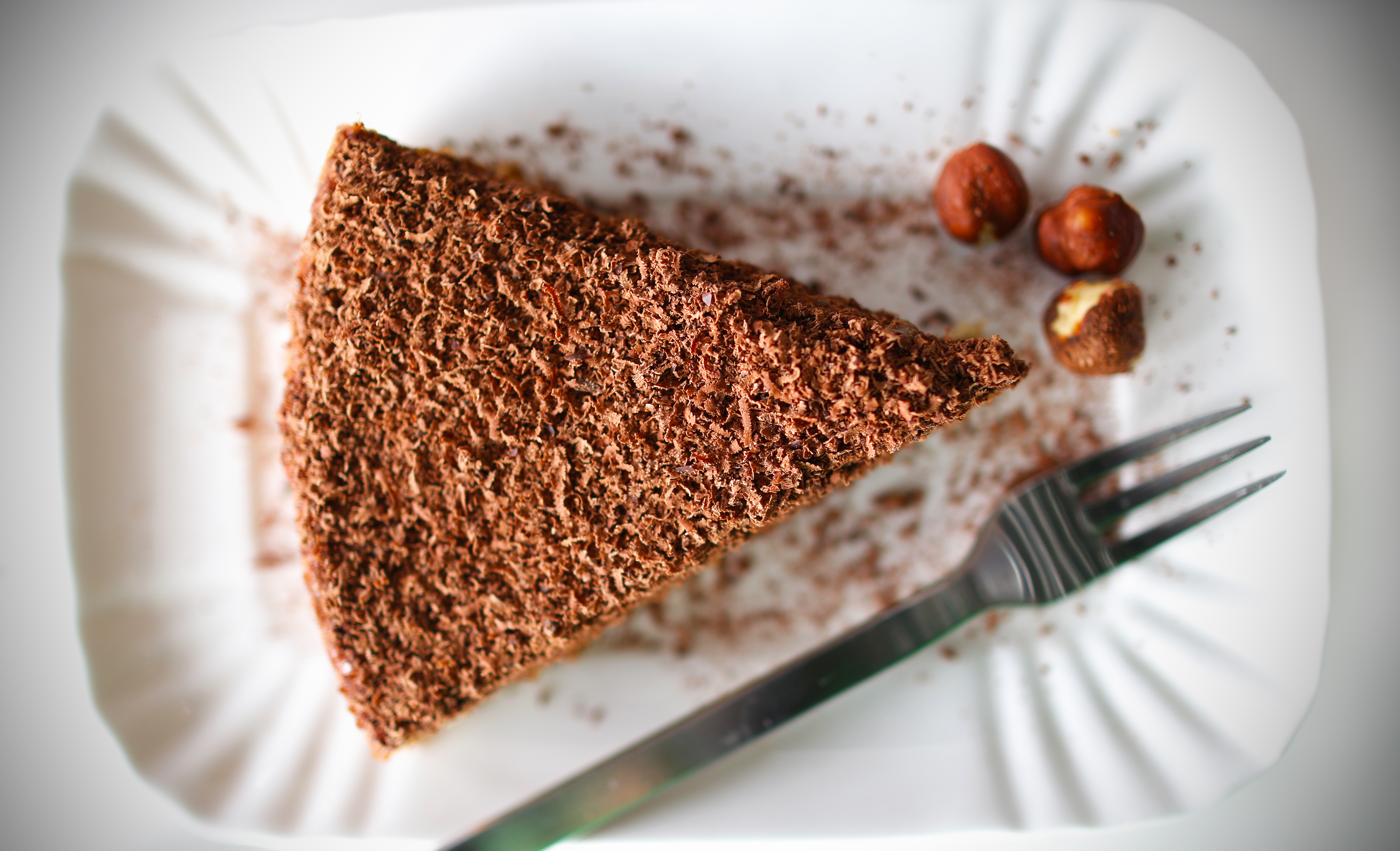 Tortice, kjer se testo naredi tako da se ločeno peni beljake se meni zdijo veliko bolj okusne in delikatne, kot pa tiste kjer se zmeša vse sestavine skupaj. Verjetno človek porabi kakšnih 10 minut dlje in pa nekoliko več nežnosti pri mešanju, rezultat je pa povsem drugačen. Lešnikova tortica po z zgornje slike je nastala po navdihu recepta J.Oliverja in je še pa še dobra – najprejprej je v ustih mehka potem grobo zahrustlja po lešnikih in nato še drobno zahrustlja od maka….in kot da še ni bilo zadosti, se ravno takrat začne v ustih topiti naribana čokolada. Edina škoda je le, da en kos sestoji iz 7 vgrizov… tako nekako sem preračunala. … Potem pa je potrebno že načeti nov kos. Za lešnikovo tortico potrebuješ naslednje sestavine: 115 g zmehčanega masla, 125 g lešnikov, 125 g sladkorja, nastrgano pomarančno lupinico, 4 jajca, 30 g moke, 125 ricotte ali skute, 2 žlici maka, ščepec soli, nekaj žlic marmelade (po izbiri) in 50 g temne čokolade. Da bi lešniki postali še bolj aromatični jih popečeš v pečici, 5 minut na 190 stopinj potem pa jih zmelješ – pa ne čisto v prah. Maslo in sladkor stepeš, tako da postane masa bleda, potem pa po malem dodajaš samo rumenjake. Moko preseješ k masleni masi, dodaš pomarančno lupinico, ricotto, zmlete lešnike in mak. V drugi posodi stepeš beljake do trdega patem pa sneg narahlo vmešaš v maso. Vse skupaj preliješ v pomaščen in pomokan model za torte, premer cca 23-25 cm. Pečeš 25-30 minut. Ko je tortica pečena počakaš, da se delno ohladi potem pa jo premažeš z rahlo razredčeno marmeladom – razredčiš jo z žlico ali dvema vode. Za konec po vrhu nastrgaš čokolado.