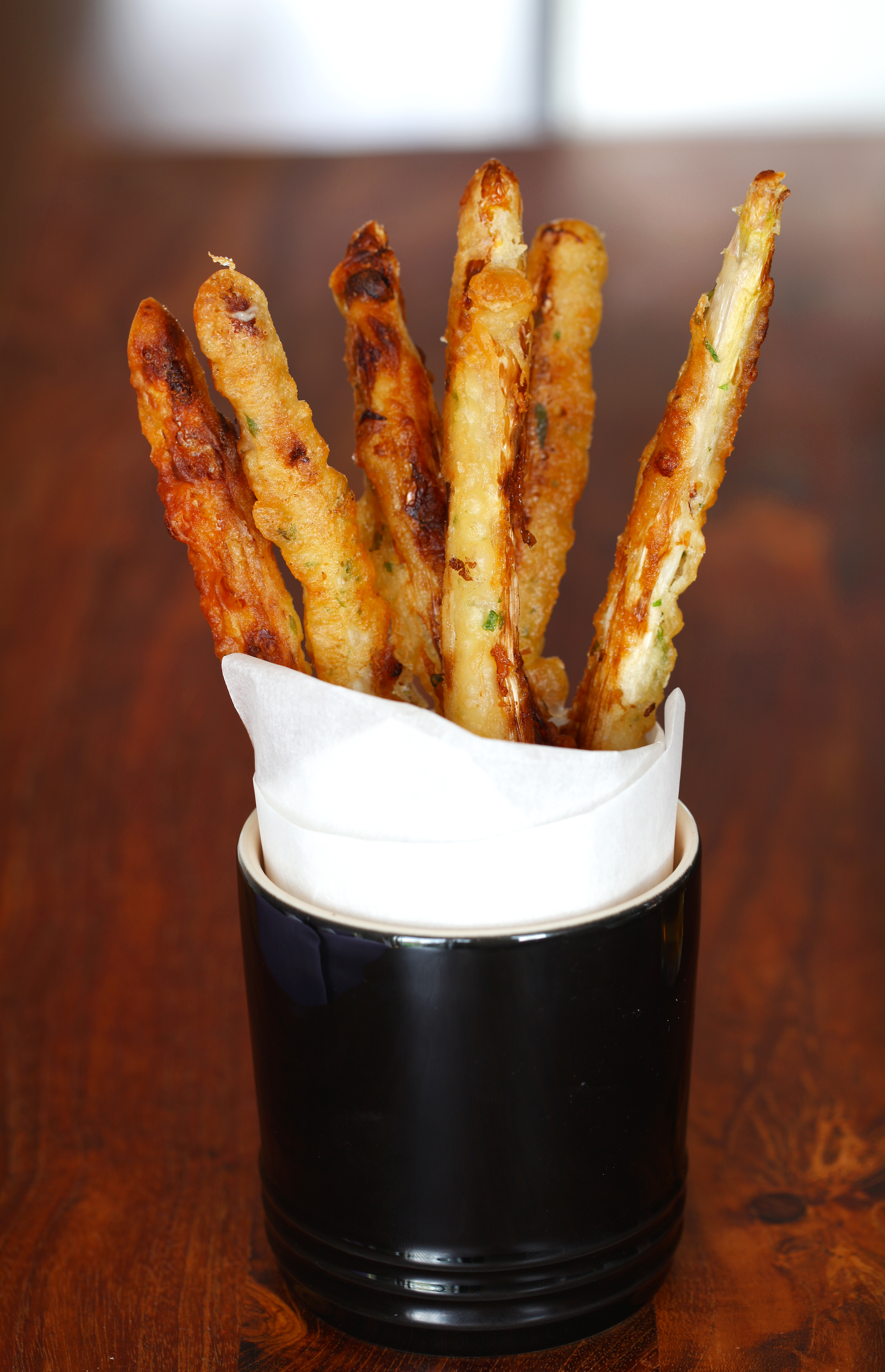 Sezona špargljev je odprta! In ko se človek naveliča špargljeve juhe pa špargljeve rižote pa špargljev v solati, pa špargljev s šunko, pa na žaru…. pride na vrsto tale slasten recept. Našla sem ga v angleški kuharski reviji in ga priredila malo po svojem okusu. Kontrast med delikatnim okusom in nežno strukturo špargljev ter hrustljavo pivsko skorjico deluje odlično. Šparglje malo poliješ olivnim olje in jih najprej pečeš v pečici, kakšnih 10 minut na 180 stopinj. Medtem ko se hladijo pripraviš pivsko testo. 150 g moke, žličko soli, ščepce mletega koriandra, ščepec curryja, ščepec popra, žlica sesekljanega petršilja. V to mešanico z metlico vmešaš 150 ml piva – testo naj bo zmerno gosto oziroma toliko, da se lepo prime špargljev.V ponvici dobro segreješ olje in ocvreš šparglje. Zraven se odlično poda pomaka narejena iz majoneze, soka pol limone, popra in limonine lupinice. In pivo seveda!