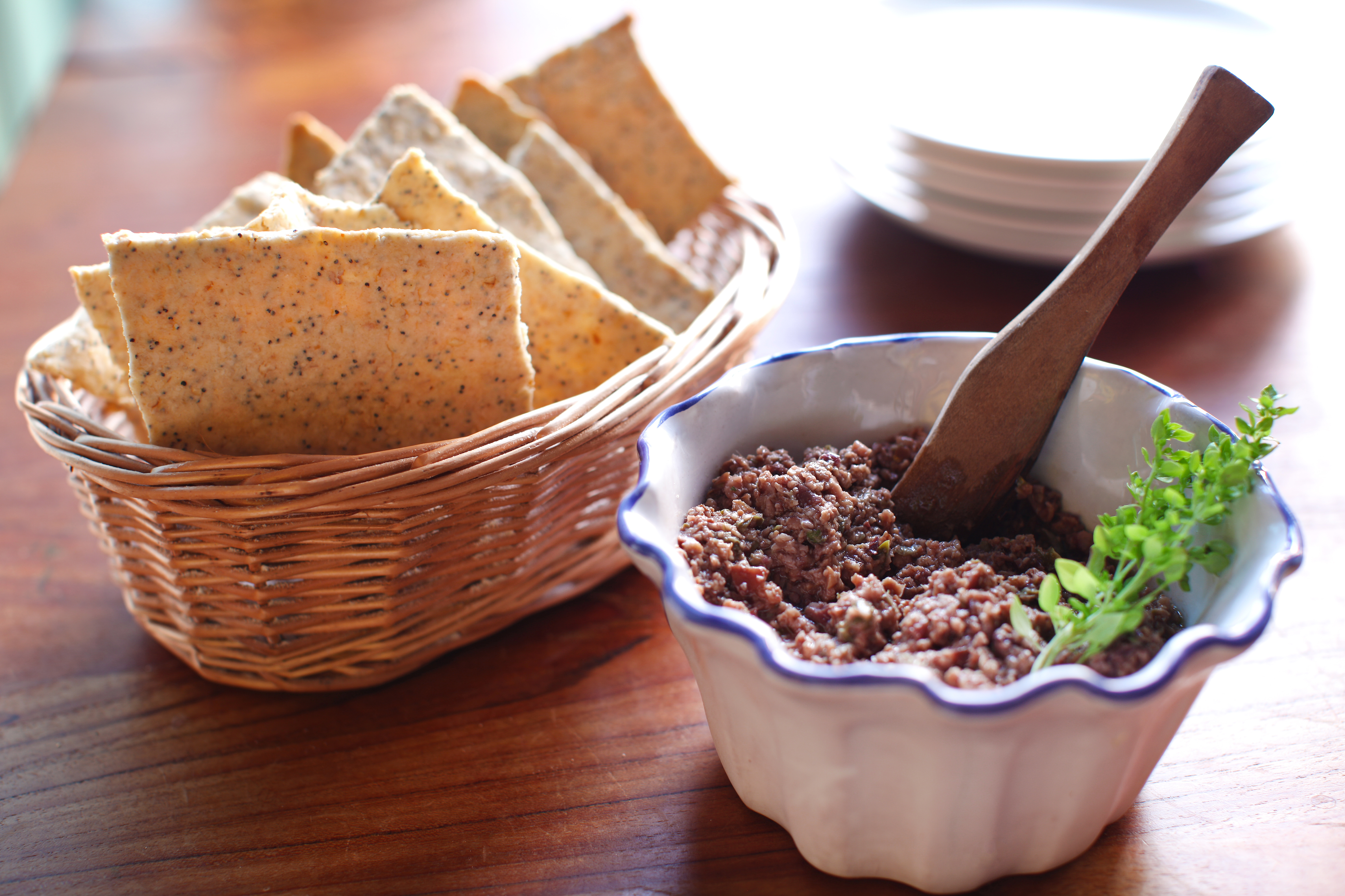 Tapenade je izključno za ljubitelje oliv, sicer pa za na krekerje priporočam namaz iz sušenih paradižnikov ali pa baba ghanoush – namaz iz malancan.