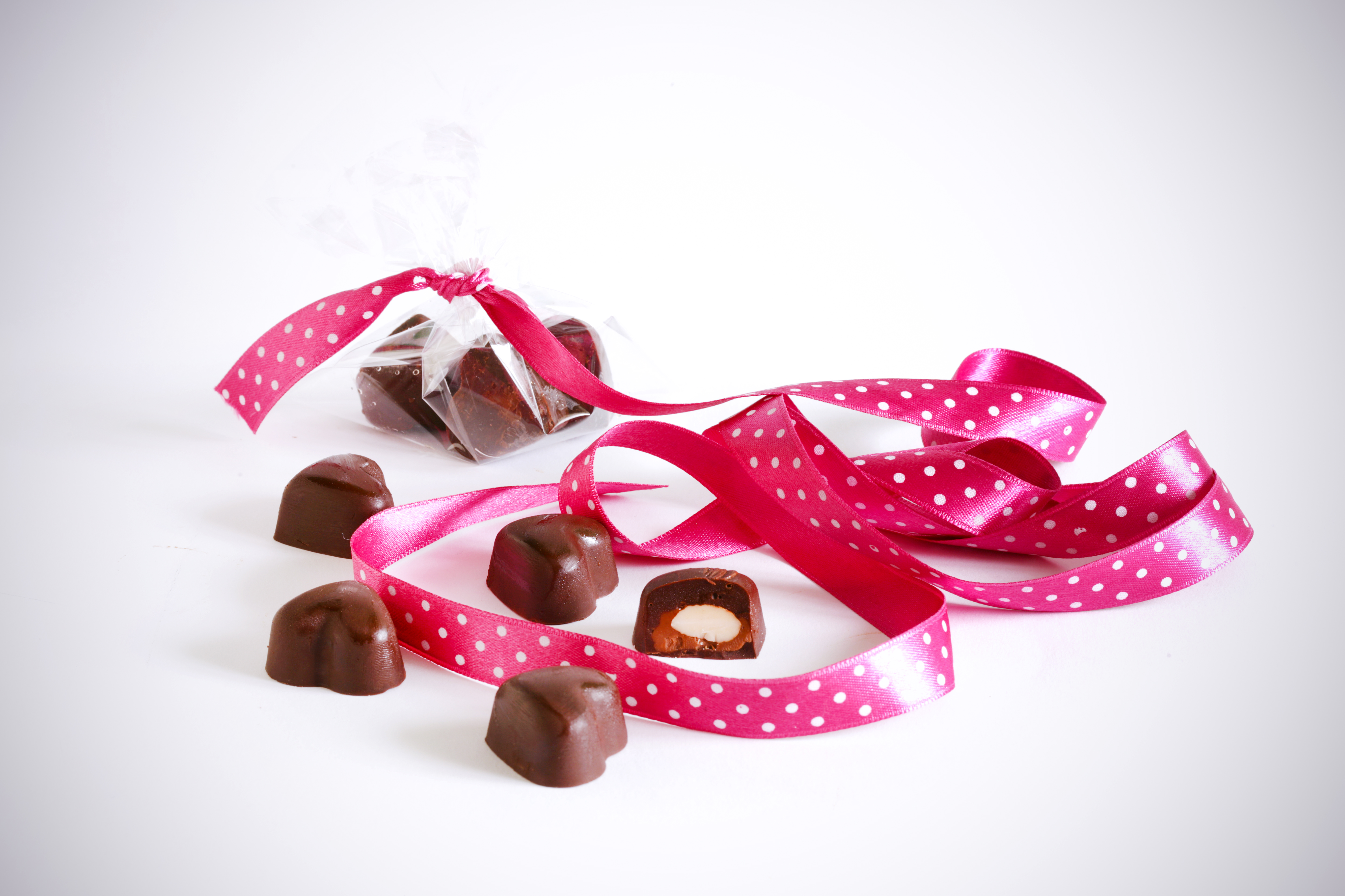 Na Valentinovo, ali pa še bolje kar tako na en dan, sem posebne ljudi v svojem življenju obdarila s takšnimi doma narejenimi pralinami. Polnjene so z nougat kremo, v sredini pa se skriva še nekaj oreščkasto hrustljavega.