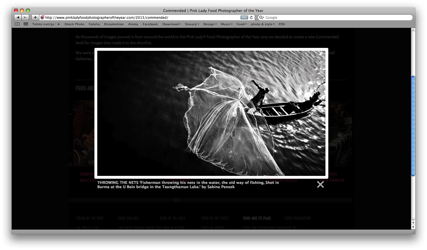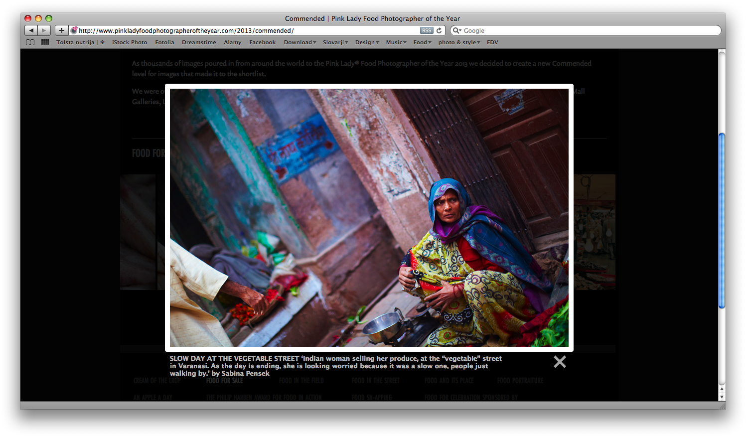 Pred nedavnim sem se udeležila mednarodnega fotonatečaja Food photographer of the year. Gre za fotonatečaj angleškega organizatorja, kamor je vsak lahko prijavil pet fotografij. Izmed večtisoč prispelih fotografij, se jih je 100 uvrstilo na razstavo v londonsko Mall Galleries, še nadaljnih sto fotografij pa so zaradi izjemne kakovosti in kreativnosti uvrstili na spletno stran ogranizatorja, na shortlisto v “Commended” level. Tja so se uvrstile kar tri moje fotografije.