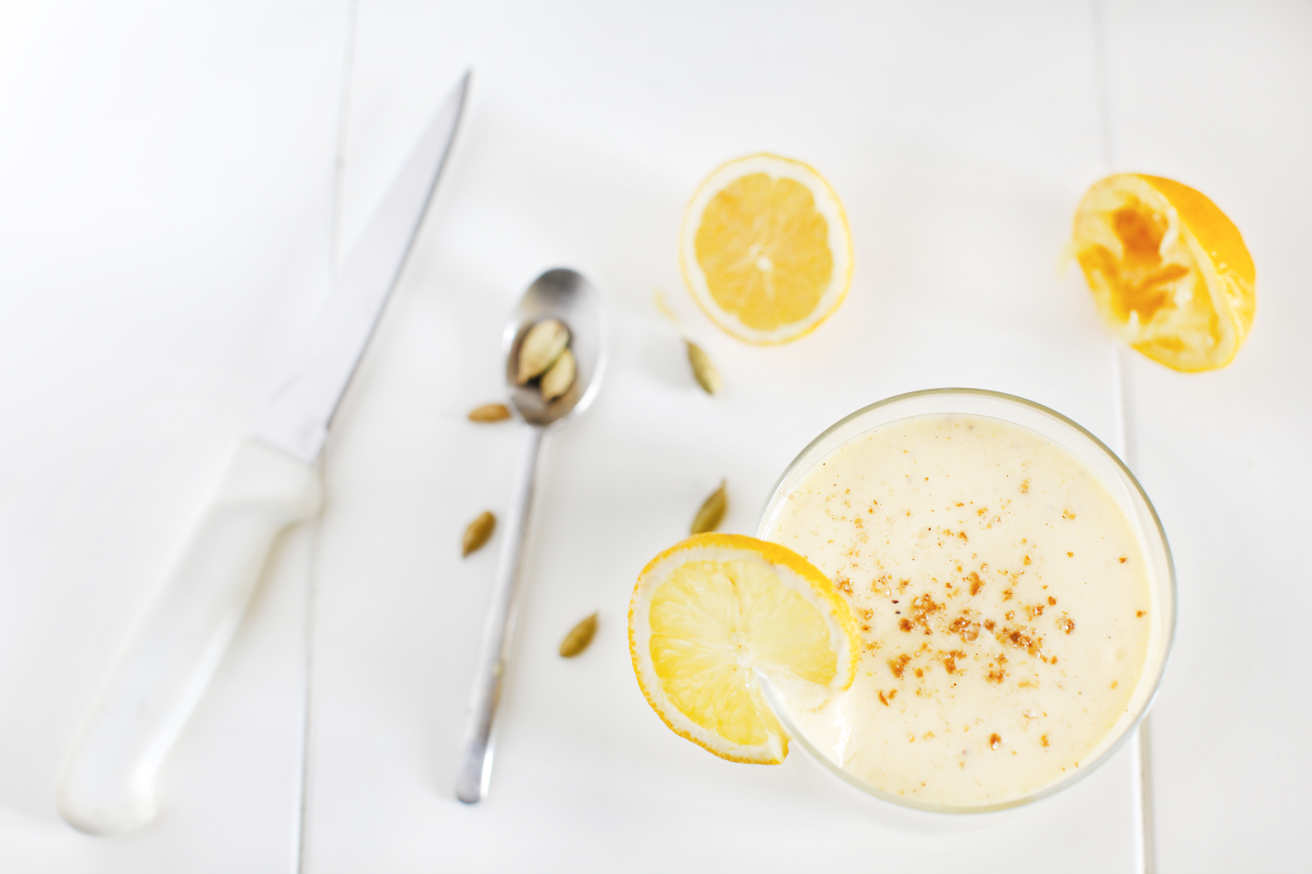 Lassi je osvežilna indijska pijača, narejena z jogurtom in izbranim sadjem. Tega sem naredila iz pol banane, pol mangota, enega jogurta in soka ene limone. Vanj sem vmešala še zdrobljena semena cardamoma in pol žličke cimeta. Dobro zmiksaš in ohladiš. Mljask.