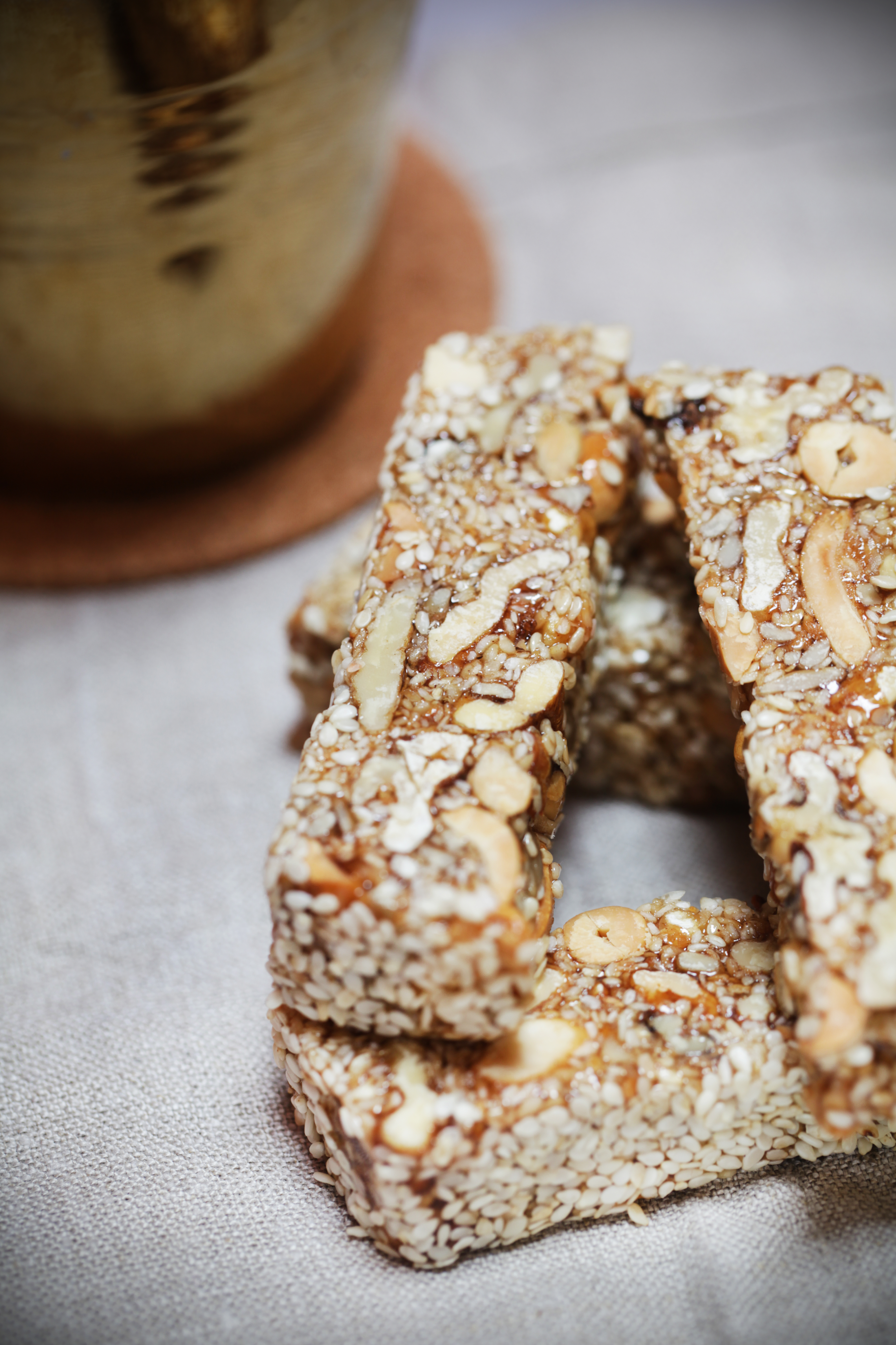 Ob teh mega okusnih in bogatih rezinah iz oreščkov in medu sem zlahka pozabila na čokoladno tortico, katere se mi je zaluštalo ob čaju ob petih. Še posebej dekadentna bo 17. ura, če bo izbrani čaj masala čaj in če bo v zmesi za rezine nekaj malega indijskih začimb.