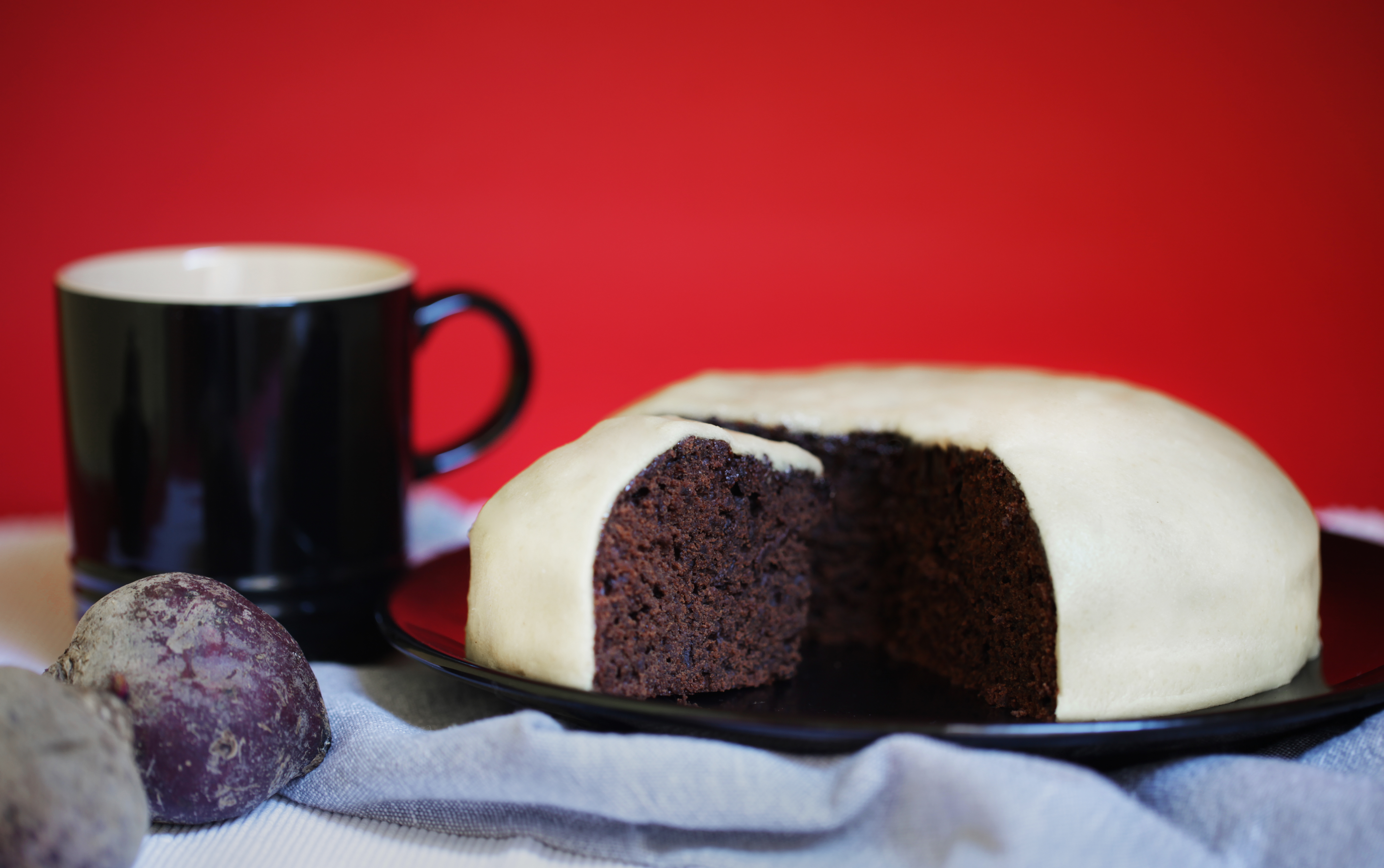 270 g moke preseješ ter dodaš 200 g demarara sladkorja, 130 g kakava v prahu, 50 g čokoladnih kapljic, pol žličke pecilnega praška, ščepec soli, žličko začimbe allspice, žličko ingverja in pol žličke mletih klinčkov. Nato vmešaš 2 rahlo stepeni jajci, 15o ml soka rdeče pese in 80 g stopljenega masla. Vliješ v model za peko tort, s premerom 20 cm in naj bo obložen s peki papirjem potem pa pečeš približno 30 minut na 170 stopinj, oziroma toliko, da prestane “test z zobotrebcem”.