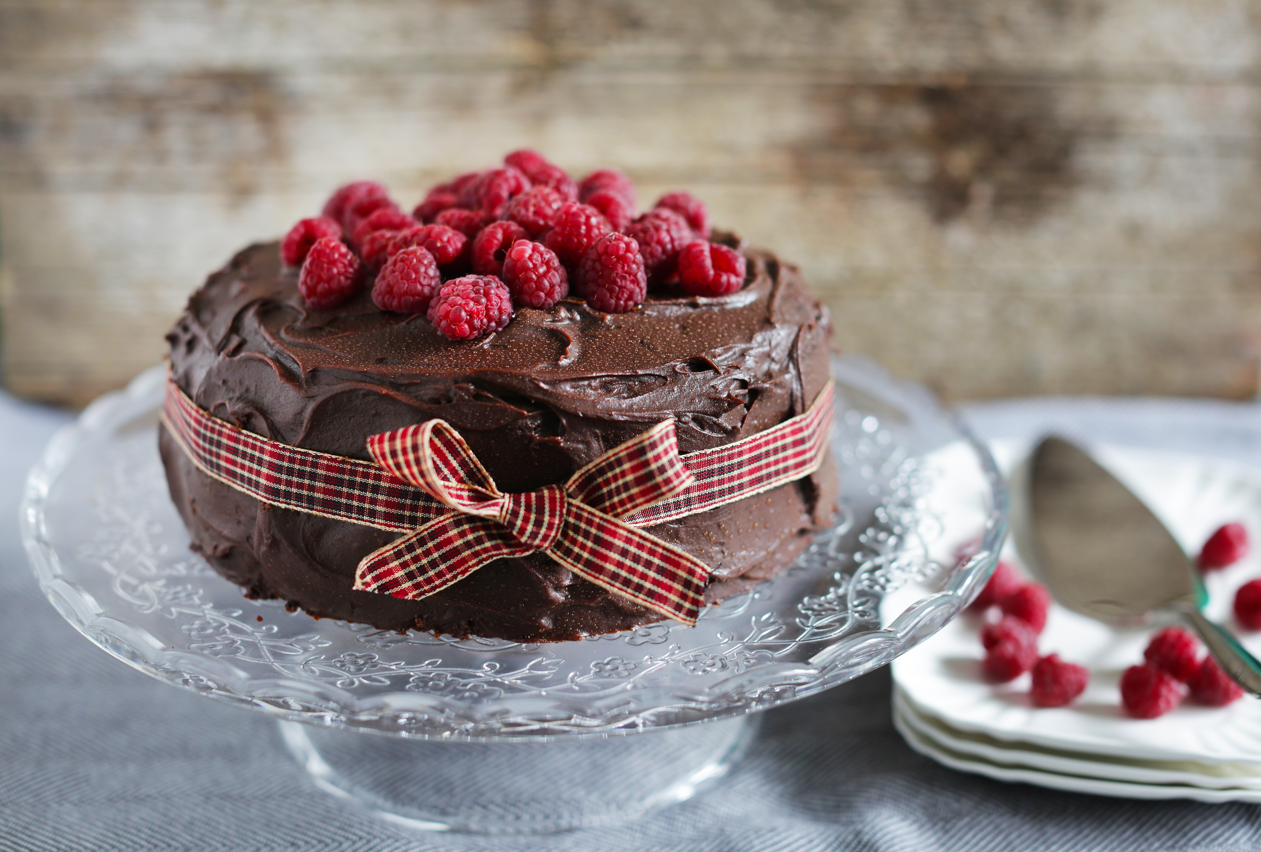 Ko je torta pečena in ohlajena, jo počez prerežeš na tri sloje in vsakega na debelo namažeš z dobro malinino marmelado. Torto zložiš in premažeš še z ganacheom ter okrasiš s svežimi malinami.
