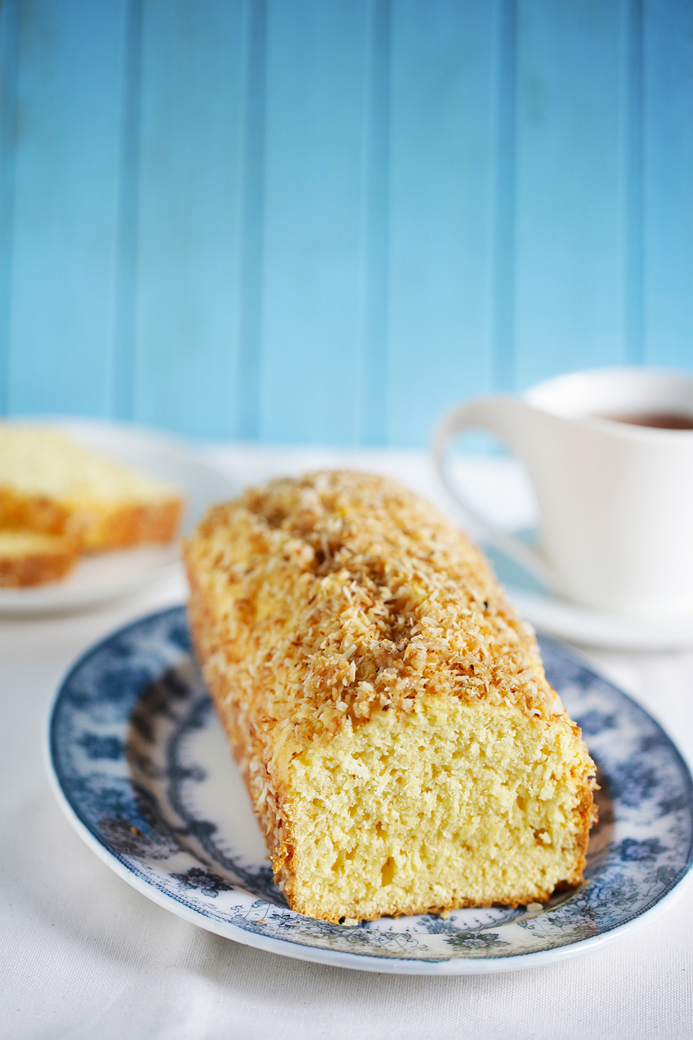 Pečico segreješ na 175 stopinj. S kokosovim maslom pomažeš pleh za peko peciva in ga malo potreseš z moko. V posodi nato zmešaš 2 skodelici navadne moke, ščep soli in pol paketka pecilnega praška (oz. 1,5 čajne žličke). V drugi posodi stepeš 100 g masla sobne temperature (lahko tudi kokosovega) z 1 skodelico rjavega sladkorja. Ko postane kremasto, dodaš vaniljo ene vanilijeve palčke in nato počasi dodajaš izmenično 3 jajca in mešanico moke. Po vsakem jajcu mešanico dobro premešaš. Jajca naj bodo sobne temperature. Na koncu primešaš še 1 kozarček kislega mleka ali pa kokosovega jogurta ter 1 skodelico kokosovega mesa.