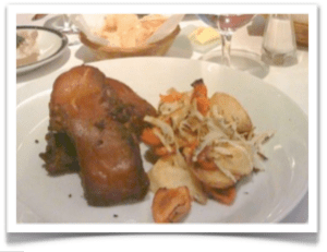 2. Glavna jed: Milk suckling pig s pečenim krompirjem in gomoljnato zelenjavo.