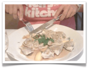 Ti nežni ravioli polnjeni z račjim mesom so bili resnično nenasitni. Še in še in še bi jih lahko pojedla. Popolnoma nič jim ni manjkalo. Močna juhica, ki je grela raviole na dnu krožnika je bila ravno prav dopolnjevala okus raviolov.