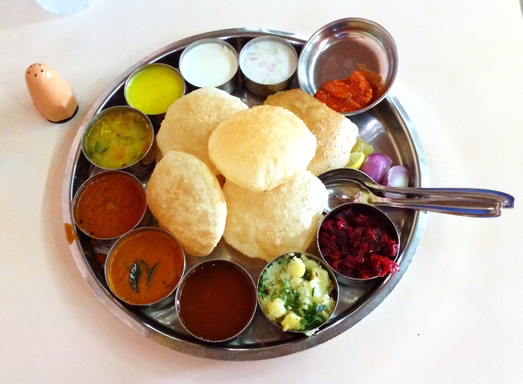 Thali and puri with chapati and roti