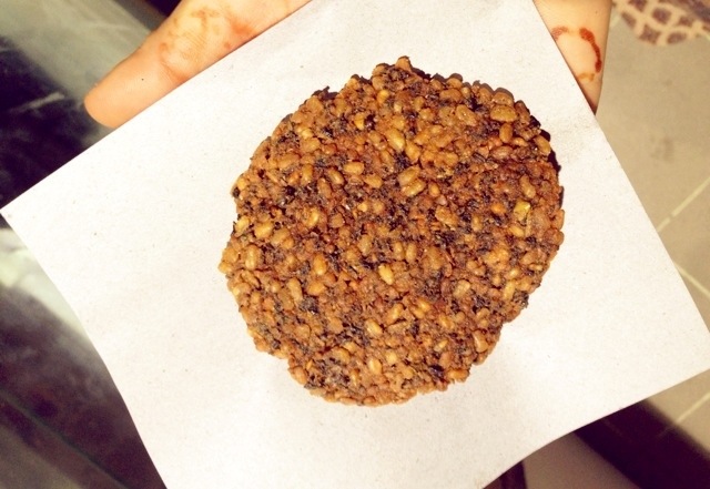 Lentil cumin balls in peanut yoghurt curd with chilli and herbs