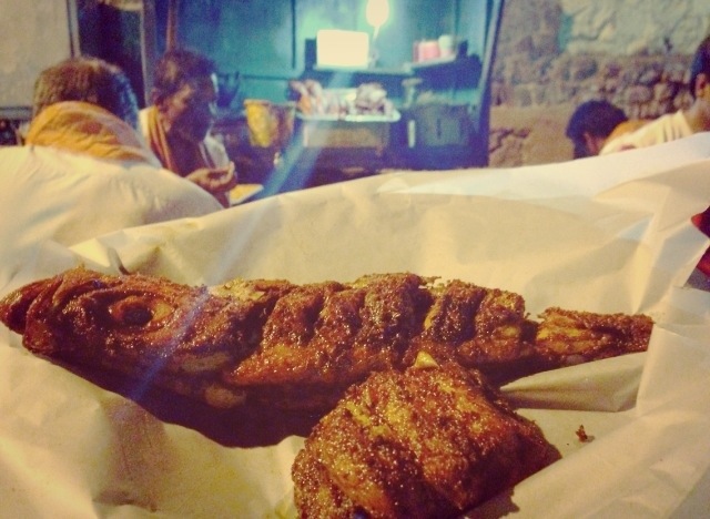Sangara and wawal with tapioka @ fish stalls in Kanyakumari