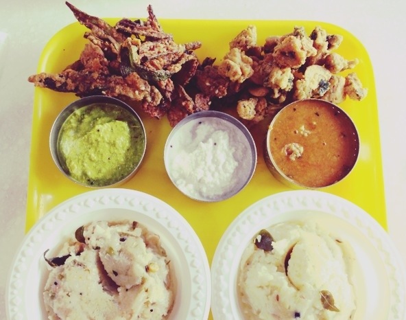 Uppma and pongal with ladys finger chips and cashew pakoda