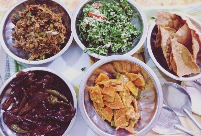 Batu, kesel muva, coconut carrot, papadam