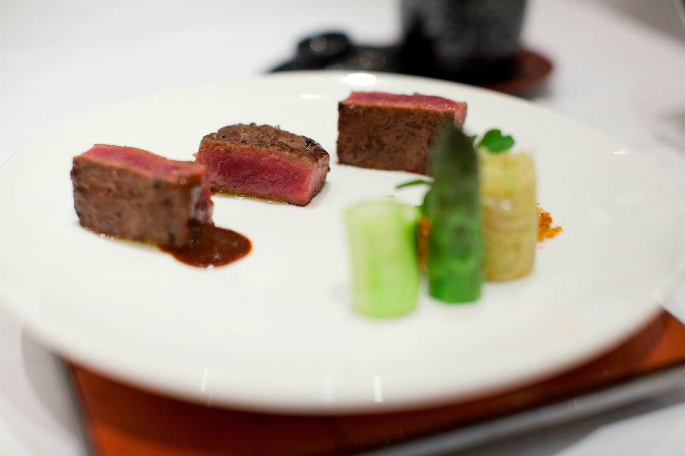 Sirloin, Black bean & Goji Berry Sauce, Julienne cabbage with ginger, asparagus, dried shrimp & yellow ginger “serunding”