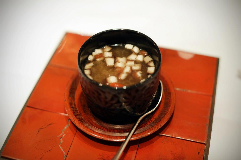 Rich miso soup with shitake and goji berries