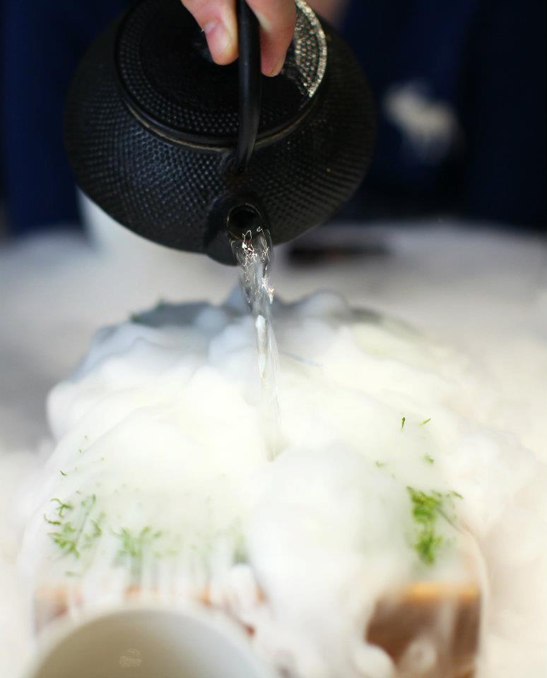 (These films disolve on your tongue and leave your oral cavity filled with smokey aroma which contributes to the complexity of the following dish.)