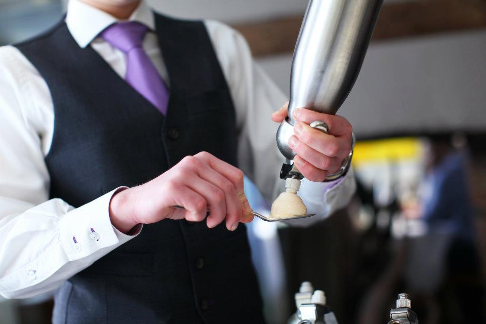 Nitro poached aperitifs – Vodka and Lime Sour, Gin and Tonic, Campari Soda