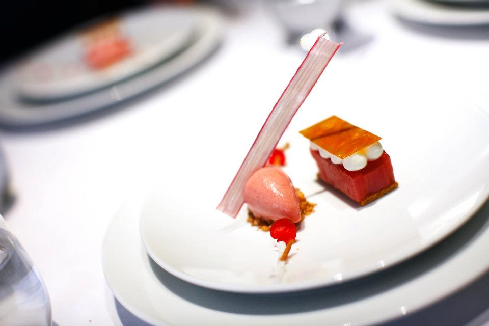 Galette of Rhubarb, Neroli Scented Yoghurt and Rhubarb Sorbet