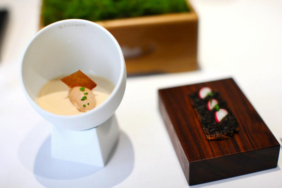 Jelly of Quail, Crayfish Cream, Chicken Liver Parfait, Oak Moss and Truffle Toast