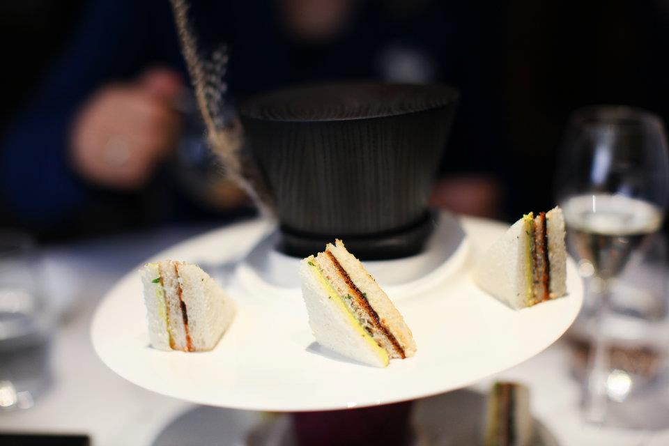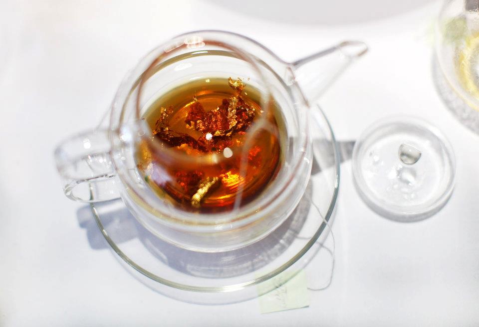 (Gelly of a rich meaty stock is moulded into a pocket watch, gilded in an edible golden leaf, than dipped into a teapot.)