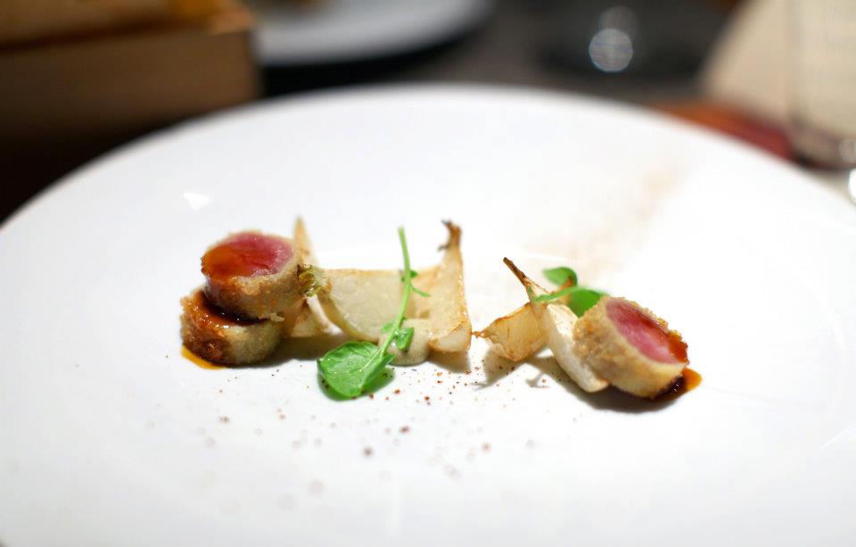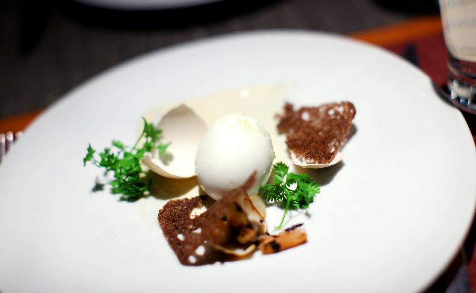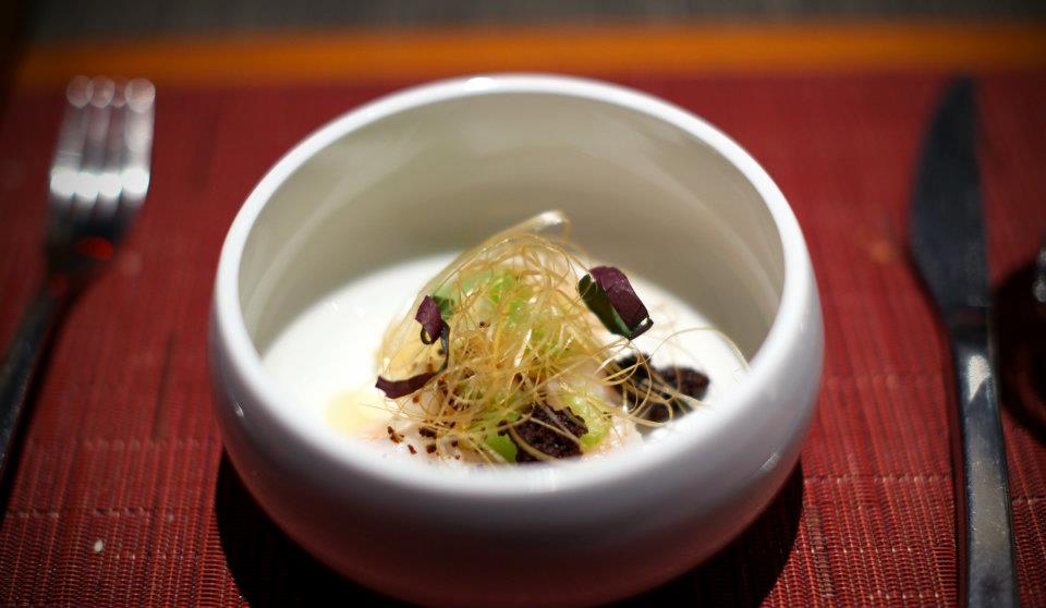 Restavracija ob vhodu deluje bolj kot kakšen bar kjer strežejo prigrizke. Enak občutek daje tudi oprema in dekor restavracije. Mize so majhne in brez belih prtov ter zelo blizu ena drugi, vzdušje pa je precej sproščeno. Poskuševalni meni je sestavljen iz vse skupaj 11 jedi, dodatno pa postrežejo še z manjšimi “vmesnimi” hodi. Jedi se pretežno spogledujejo z molekularno kuhinjo, niso pa povsem prežete s to tehniko. Vsaka jed ima vsaj en sestavni del, ki popolnoma preseneti. V tokratnem meniju je bil prvi tak pozitivni šok drugi hod, ko so postregli s tipično newyorško žemljico – New York bagel. Le da je bila ta narejena iz začinjene zmrzline. Čudovito se je podala k dimljenim lososovim nitkam in prav tako zmrznjenemu lističu sira za mazanje. Drugo takšno presenečenje se je pojavilo s četrtim krožnikom, ko se je na njemu znašla jajčna lupina, ki smo jo lahko brez skrbi pojedli skupaj z jajcem.