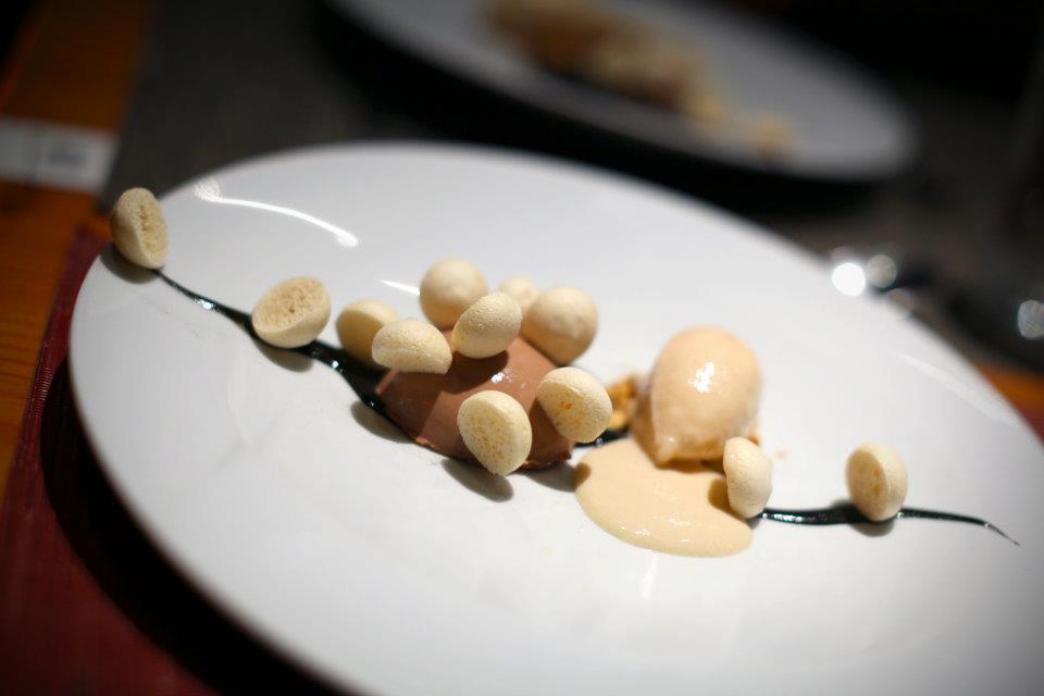 Od vseh jedi mi je najbolj v spominu ostal okus tretje predjedi – Foielafel. Gre za predrugačen falafel, ima namreč vse sestavine falafla, le da je tu dodan foie grasa. Struktura je bila najbolj podobna bombončku Raffaello.Kroglice na sliki so bile skorjice posute s čičiriko v notranjosti pa se je skrival topel foie gras.