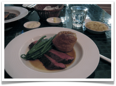 1. Glavna jed: Škotski jagenjček z yorkširskim pudingom in fižolom